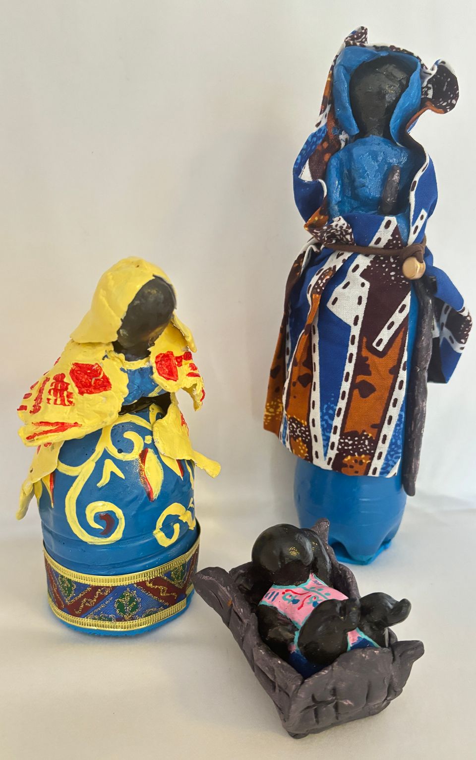 De afgedrukte kerstgroep komt van de kunstenaar Judith Martha Curaçao (maker van handgemaakte en handgeschilderde figuren)