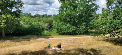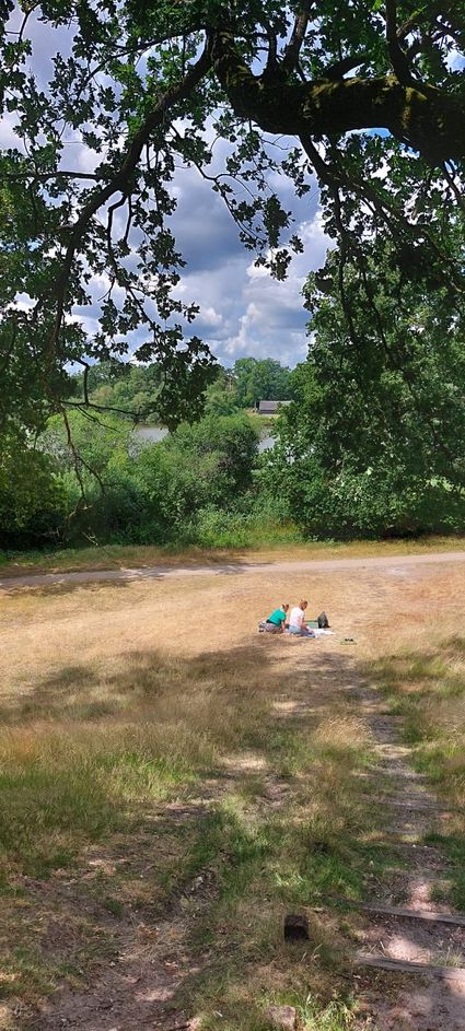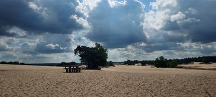 We hadden nog wel veel meer tijd willen doorbrengen op het Kootwijkerzand maar de VVV moest ook weer open om 13:30 uur dus waren we tijdgebonden. En … die overheerlijke lunch, die al een tijdje te wachten lag achter in de Land Rover, moest ook nog verorberd worden. Gauw maar weer verder om zoveel mogelijk van de route mee te krijgen en de vragen en opdrachten te vervullen. Onderweg werden we weer aangenaam verrast door de prachtige omgeving en mooie zandpaden. Gelukkig verliep de route voorspoedig, dankzij de duidelijke bolletje-pijltjeroute en natuurlijk het navigatietalent van navigator Henriette en de onverschrokken rijstijl van coureur Marieke. Na enigszins de route te hebben verkort en een kleine D-tour langs het Aardhuis, kwamen we aan bij Het Uddelermeer ;een uitstekende picknickplek .
