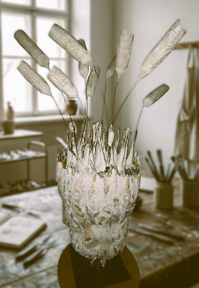 Hanneke Jonkmancreëertonder de naam Papirimento kunst die balanceert tussen kwetsbaarheid en kracht. Niet geleid door vaste regels, maar door een diepgevoelde intuïtie voor diverse materialen en vormen. Papier-mâché vormt de kern van haar werk. Wat begon als een speels materiaal in haar vroegere werken, is uitgegroeid tot een taal om de gelaagdheid van haar eigen verhalen en ervaringen te verbeelden. In elke laag zoekt ze naar dat wat klopt, maar juist ook naar dat wat afwijkt. Haar sculpturen, vazen en schalen zijn een proces van opbouwen: laag voor laag ontstaat er een textuur die uitnodigt tot aanraking en reflectie. Haar werk is geen kopie van de werkelijkheid, maar een echo van natuurlijke vormen en de gelaagdheid van het leven zelf. www.papirimento.nl