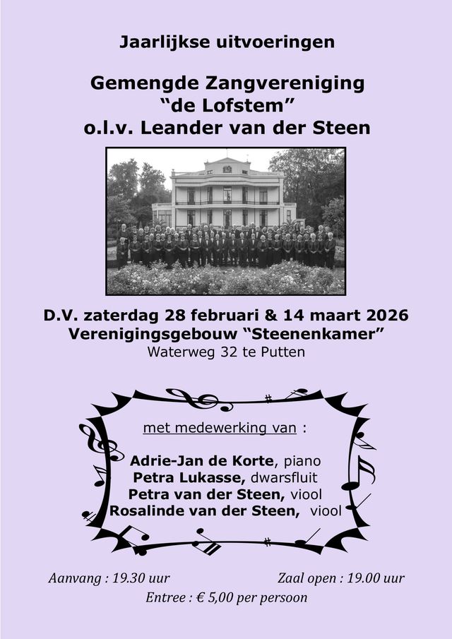 Gemengde Zangvereniging "de Lofstem" houdt haar jaarlijkse zangavond in verenigingsgebouw "Steenenkamer".
