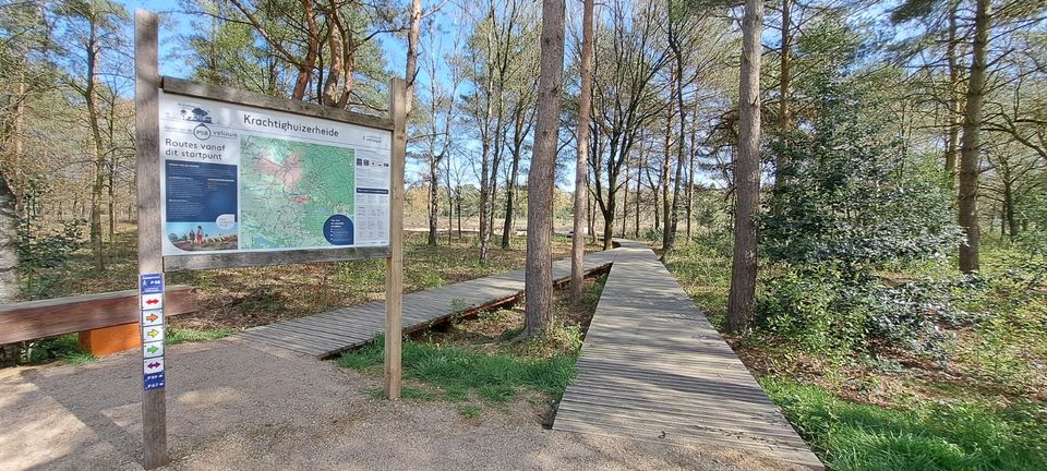 In 2025 zijn in dit gebied natuurversterkende maatregelen toegepast en is de Veluws Verleden wandelroute (3km) gerealiseerd. De start van de wandeling is bij het informatiebord tegenover de parkeerplaats aan de Krachtighuizerweg. Wandelend door de bossen en over de heide kom je meerdere overblijfselen tegen uit het prehistorische verleden. Volg de oranje pijlen. Op de grote zwerfkeien tref je historische informatie aan over Putten. Op het kunstwerk 'De Tijd" ook wel 'Woodhenge" genoemd is geinspireerd door 'Stonehenge' zie je een tijdsbalk met belangrijke data uit de geschiedenis van Putten. Ook kom je langs het zwaartepunt. Ontdek grafheuvels langs de route en geniet van het mooie uitzicht over de Veluwe op de Bostoren.